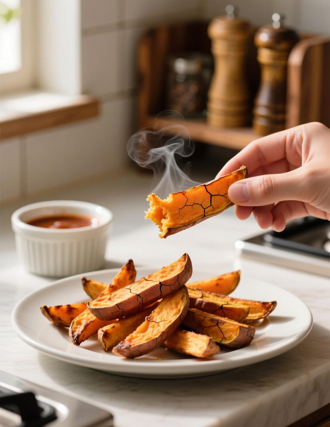 Another common issue is burning tips. This happens because of the natural sugars in sweet potatoes. Reducing the cooking temperature slightly (to 380°F) for the last few minutes can save them if you notice over-browning.