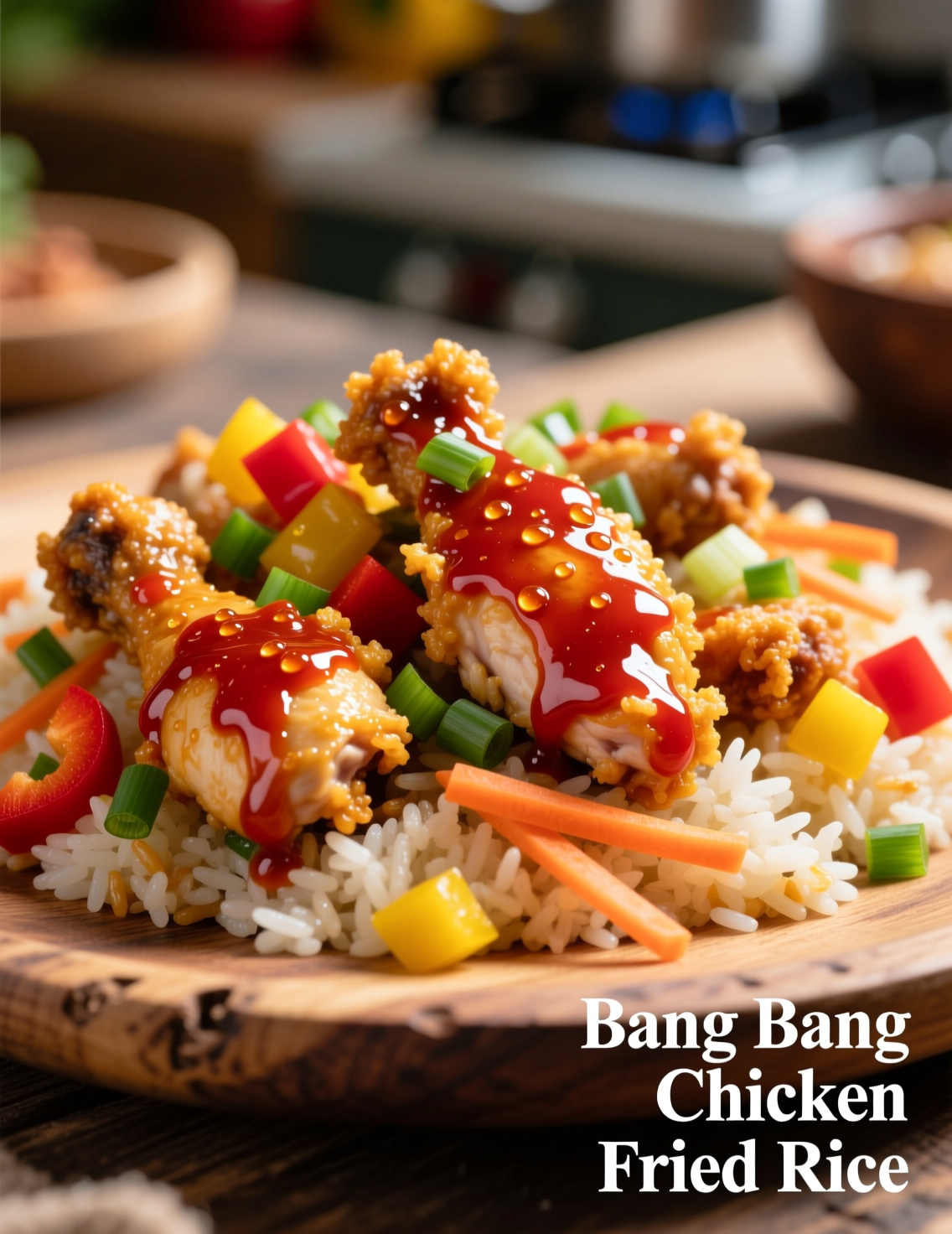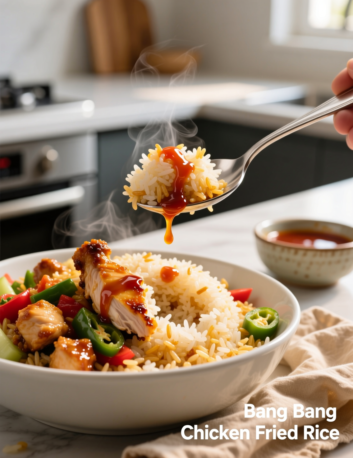 Fried rice on its own is a blank canvas. Add eggs, scallions, a few aromatics, and you’ve got comfort food. But bang bang chicken fried rice takes it into a louder, more playful territory. The dish pulls from the bang bang sauce made popular in Asian-fusion restaurants. Mayo, chili paste, sweet chili sauce, sometimes a drizzle of honey—it’s bold, unapologetic, and yet silky.
