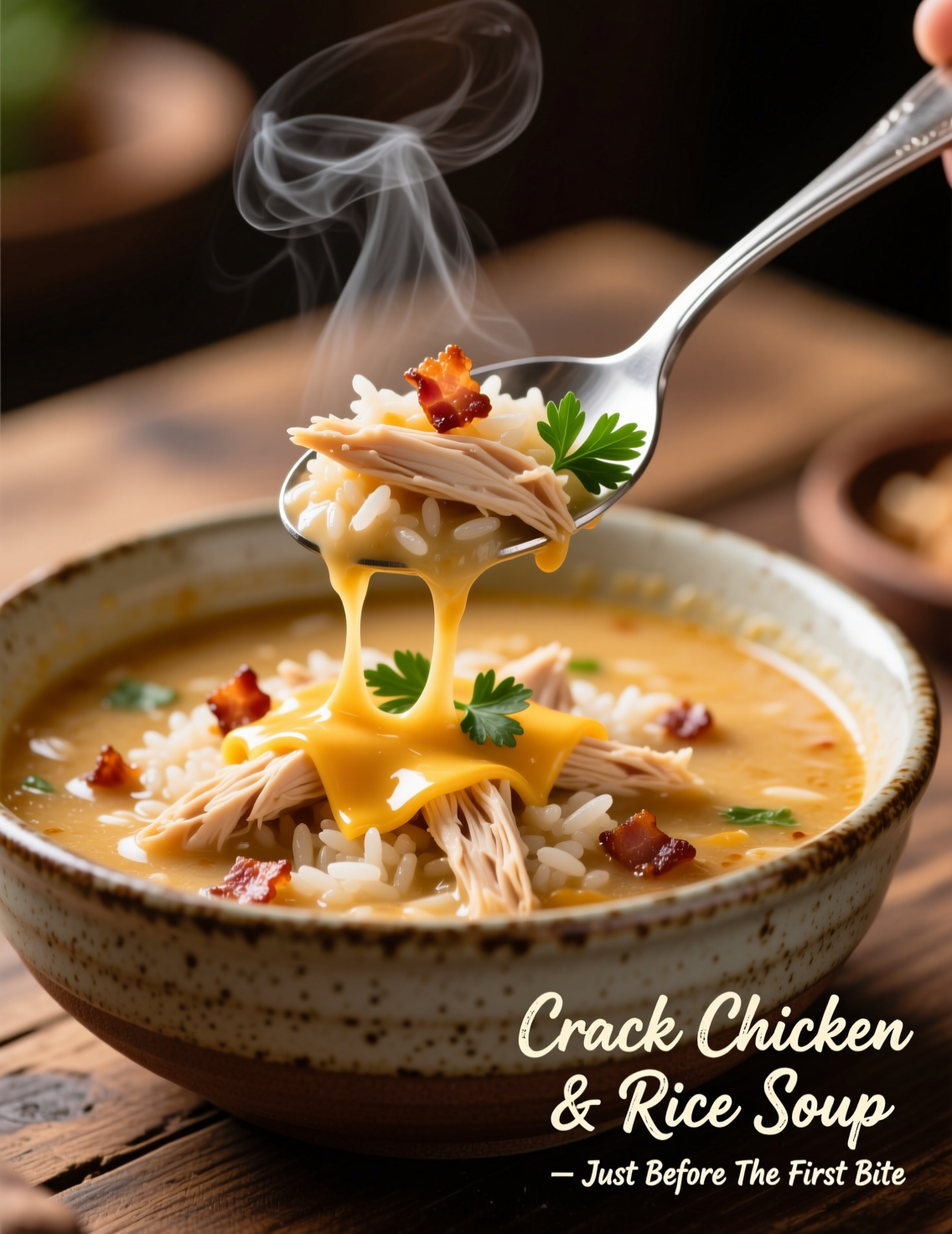 The term “crack chicken” first appeared online around the early 2010s, referring to the combination of chicken, cream cheese, cheddar, and ranch seasoning. It’s called crack because—well—it’s absurdly addictive. People couldn’t stop making it. Soon enough, someone clever added rice and broth, and boom, this soup was born.
