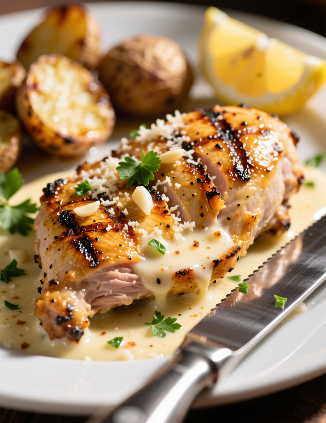 Garlic and Parmesan have been culinary partners for centuries. Garlic’s sulfur compounds release intense, earthy aromas when heated, while Parmesan’s glutamates give that deep umami kick chefs chase. Together they form a flavor base that’s almost impossible to beat. When layered over charred chicken, you get a dish that feels rustic but still polished enough for high-end dining.