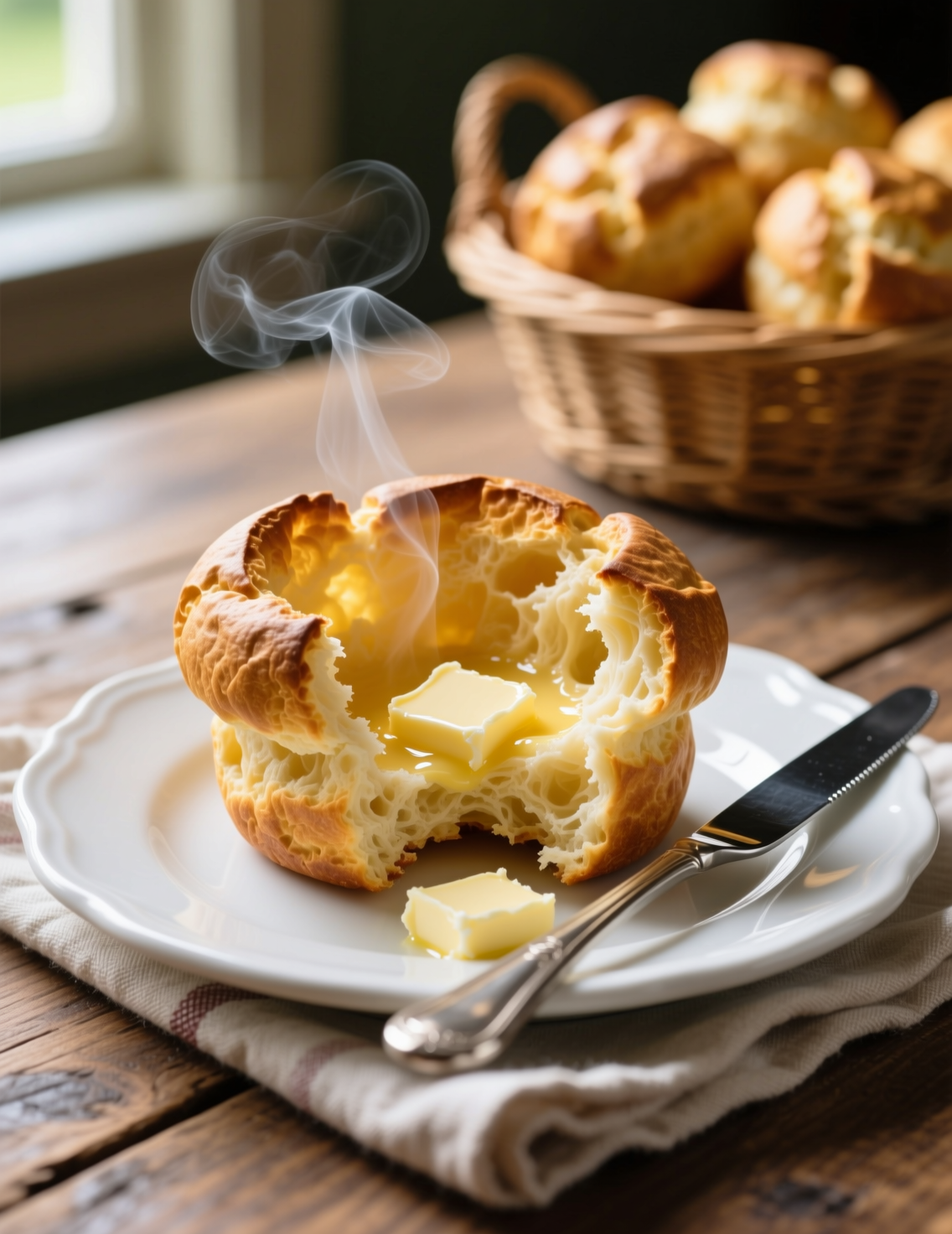 And let’s be honest. Few things in life beat the sound of a hollow popover shell cracking under your fork, steam rising, butter melting in the cavity. That moment is what food memories are made of.