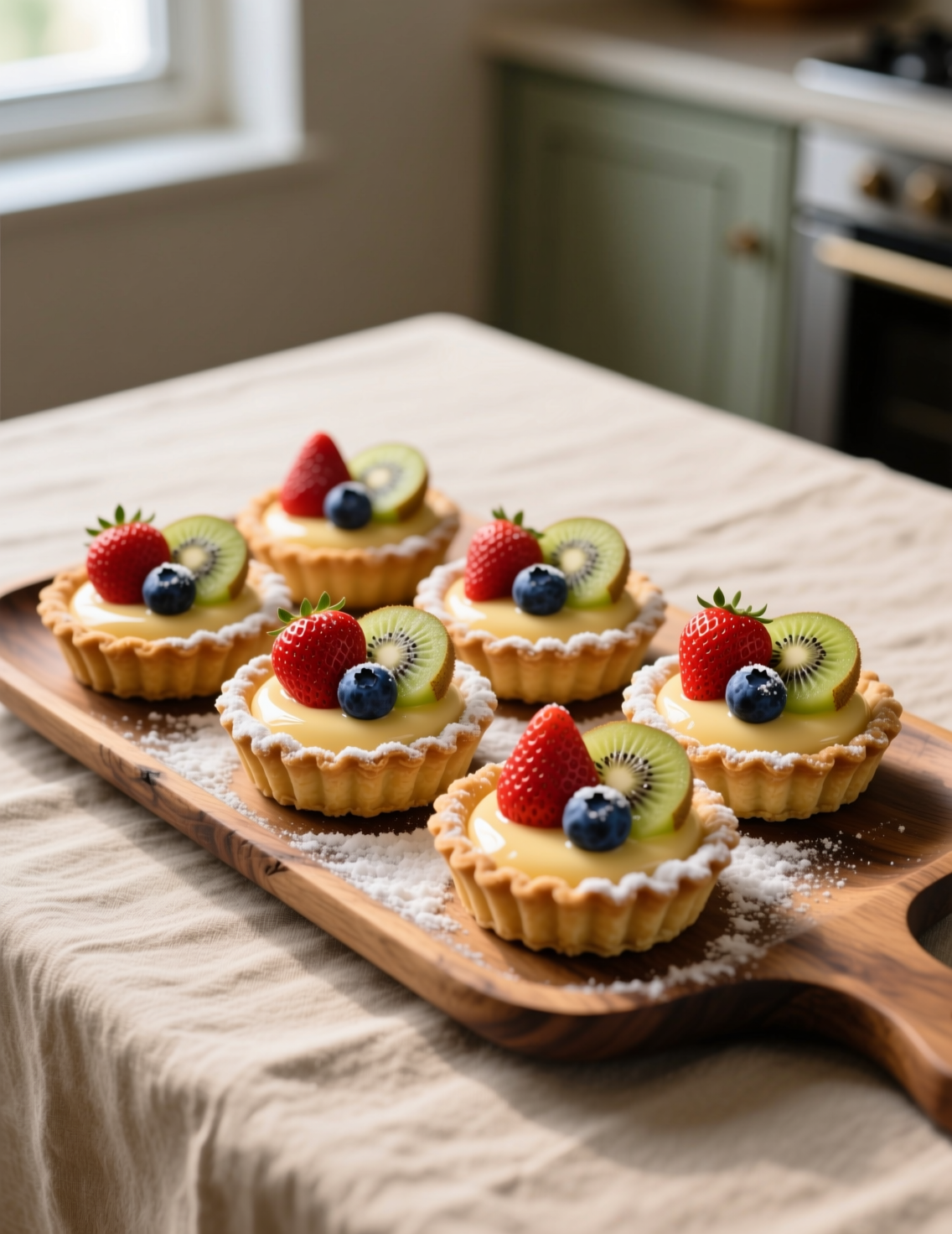 Once all components are ready, assembly is quick. Pastry cream is piped into shells with a pastry bag for neatness. Fruit is arranged with intention—odd numbers, varied colors, no overcrowding. Professionals think about “eye movement” across the tart. A tart with three berries looks deliberate; one piled with random fruit looks messy.