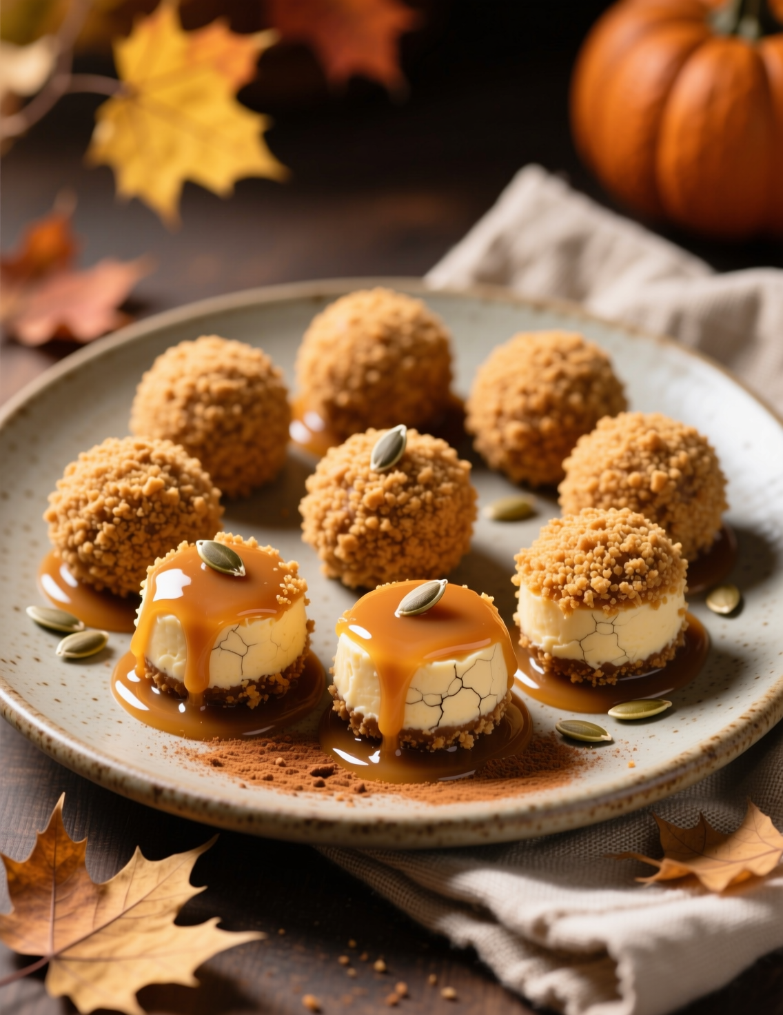 No bake pumpkin cheesecake balls are versatile. Here are some ways to elevate: